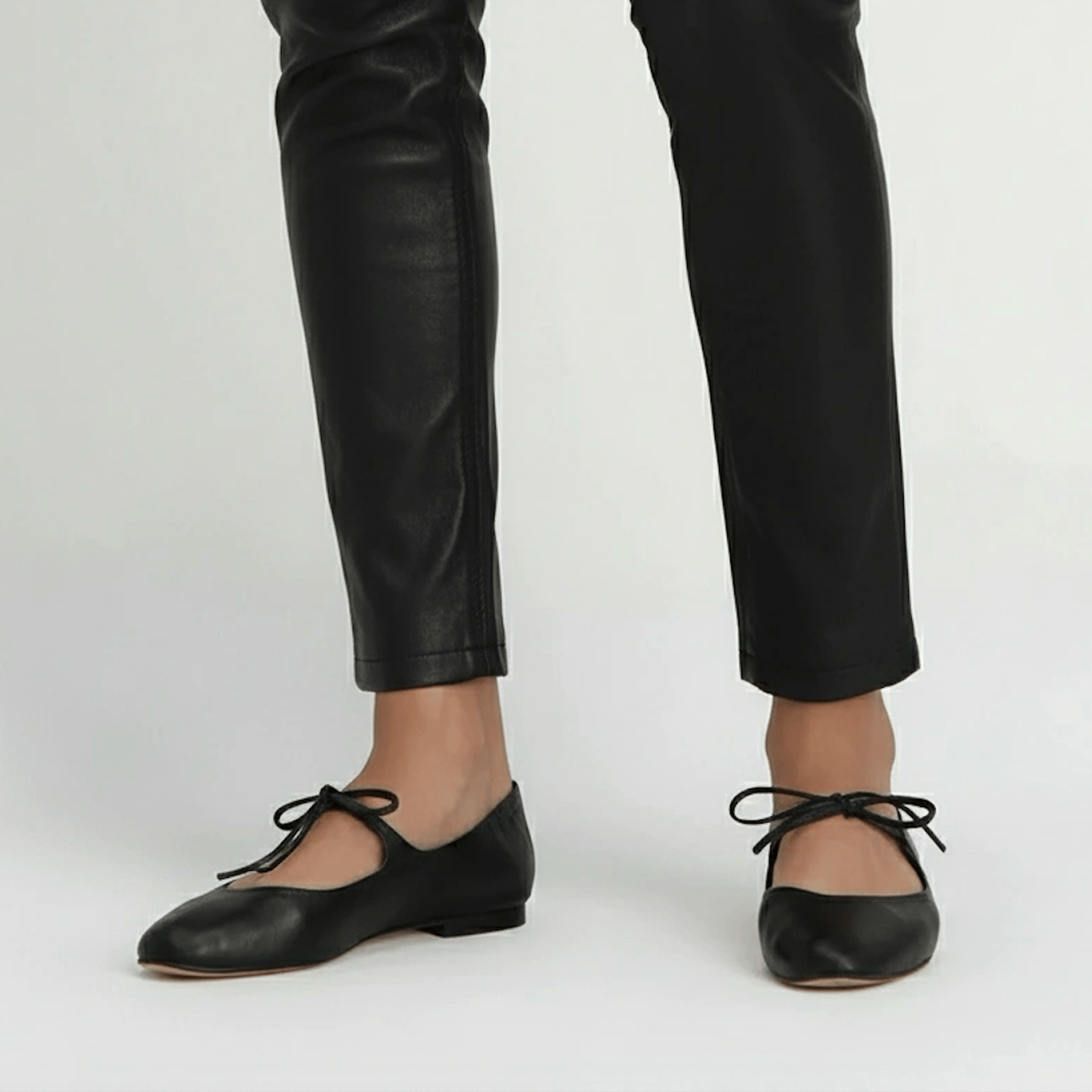 Dance around. A ballet flat with quiet poise and purposeful design. Handcrafted in butter soft leather with a rounded toe, delicate bow tie and a dainty gathered heel for a glove-like fit. Simple. Intentional. Made to move.