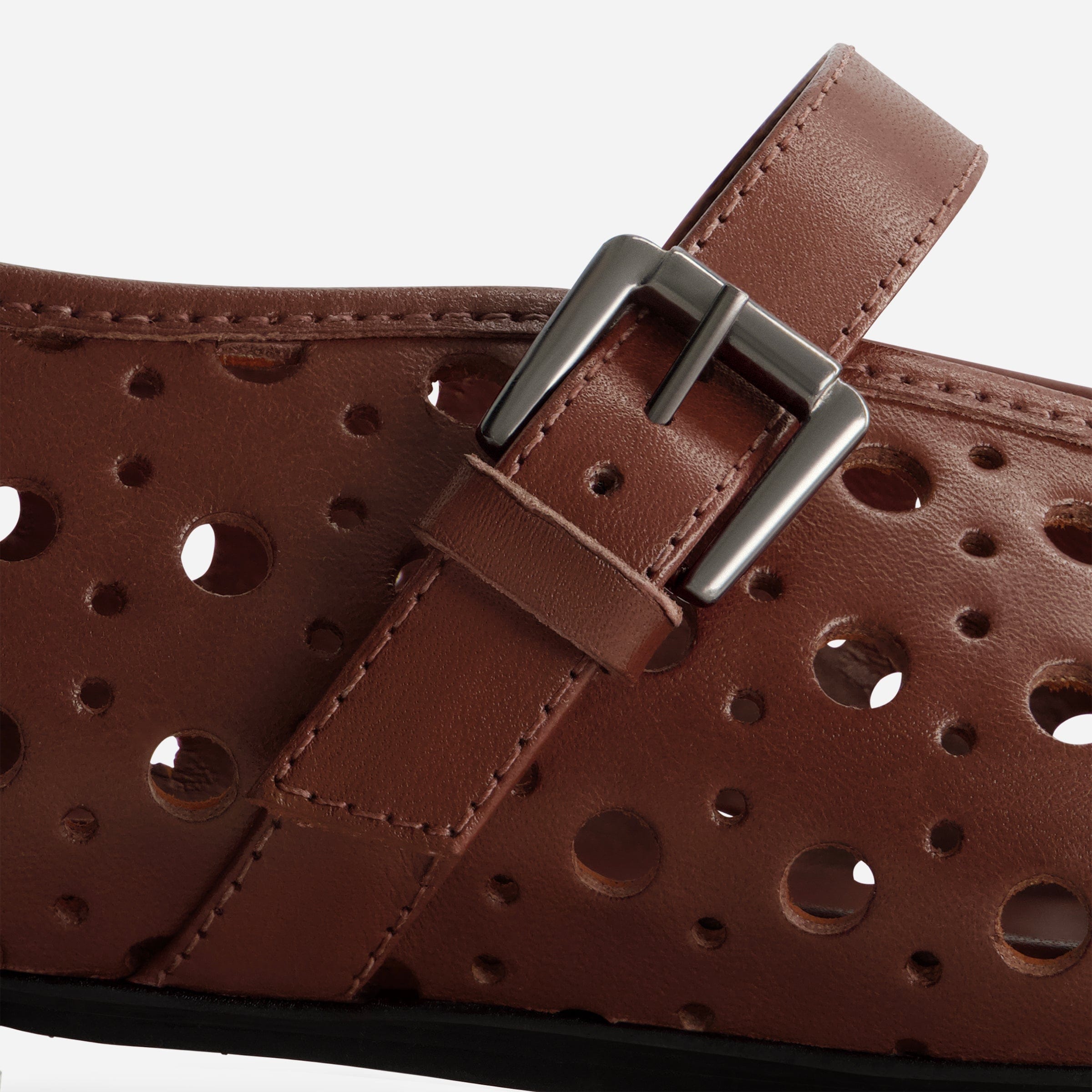 Classic femininity meets contemporary flair. This ballet flat features a classic round toe and adjustable Mary Jane strap for a secure, walkable fit. Crafted from a perforated material, it creates a subtle mesh effect that’s both breathable and effortlessly chic.