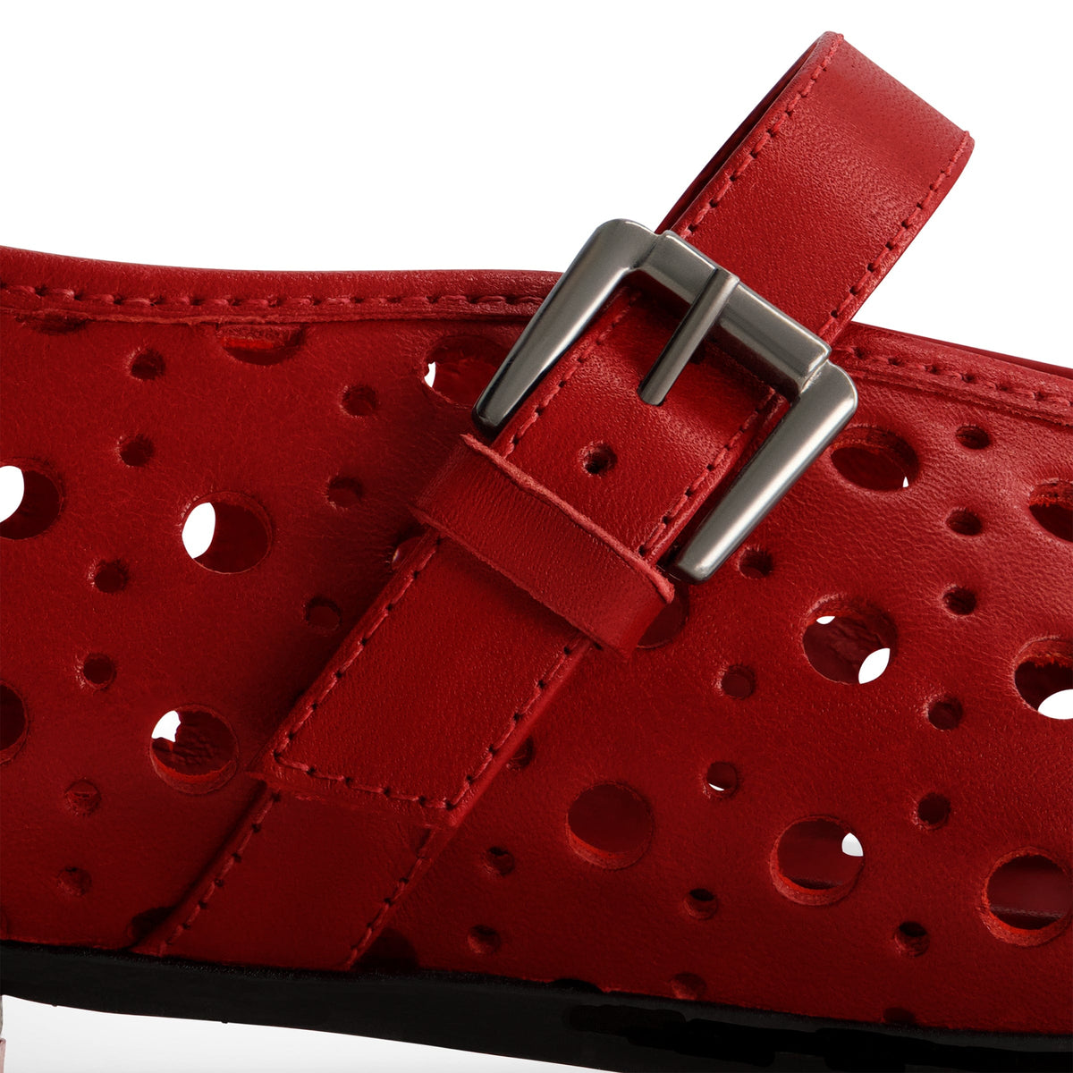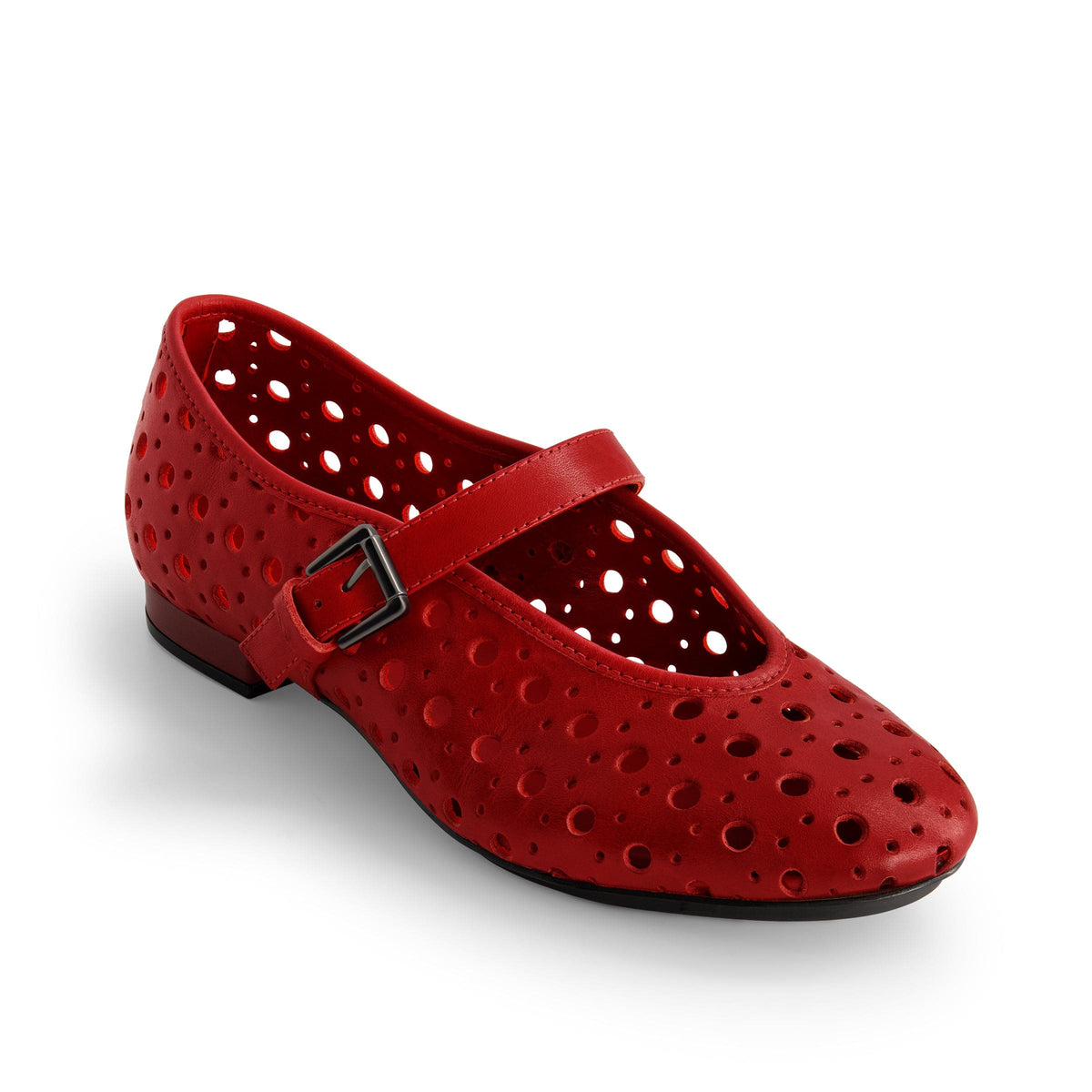 Classic femininity meets contemporary flair. This ballet flat features a classic round toe and adjustable Mary Jane strap for a secure, walkable fit. Crafted from a perforated material, it creates a subtle mesh effect that’s both breathable and effortlessly chic.