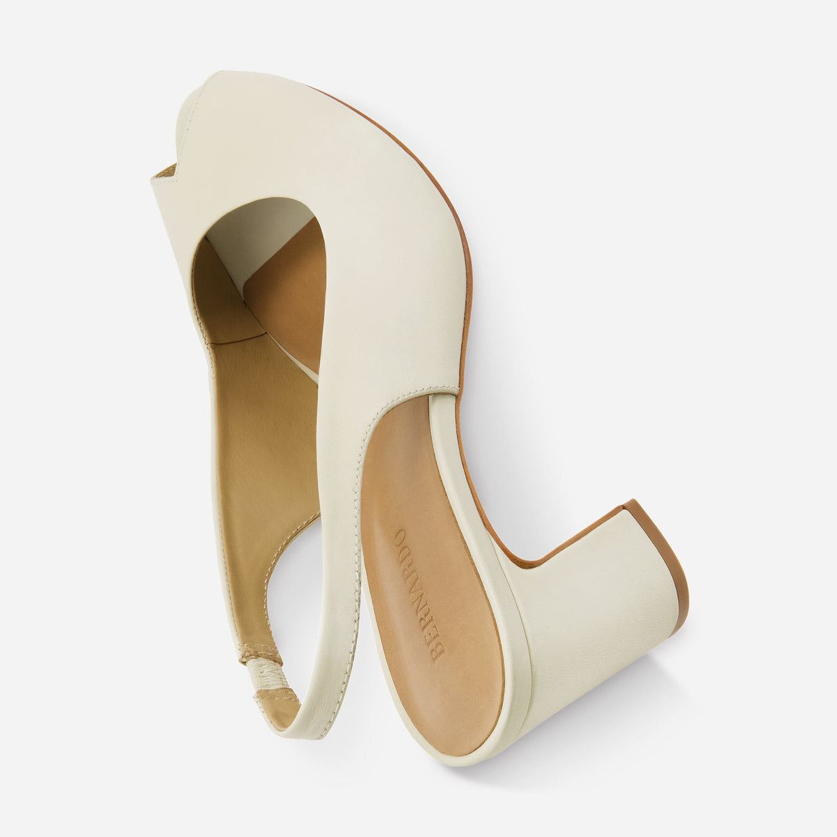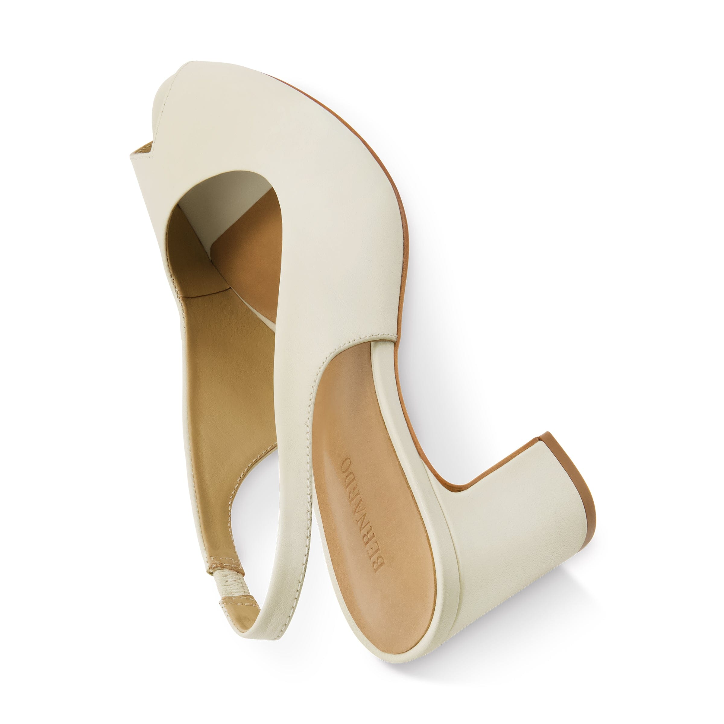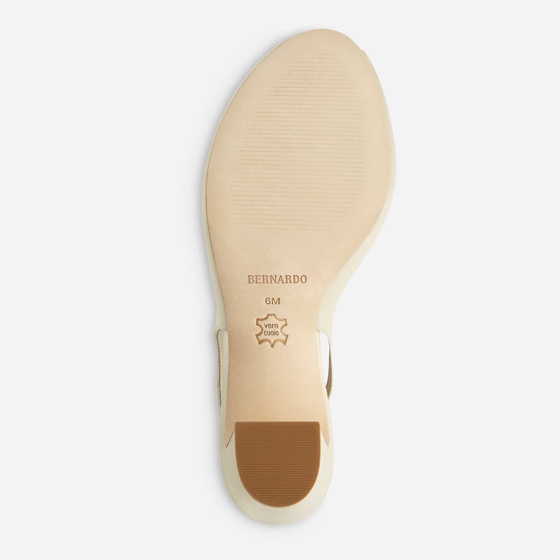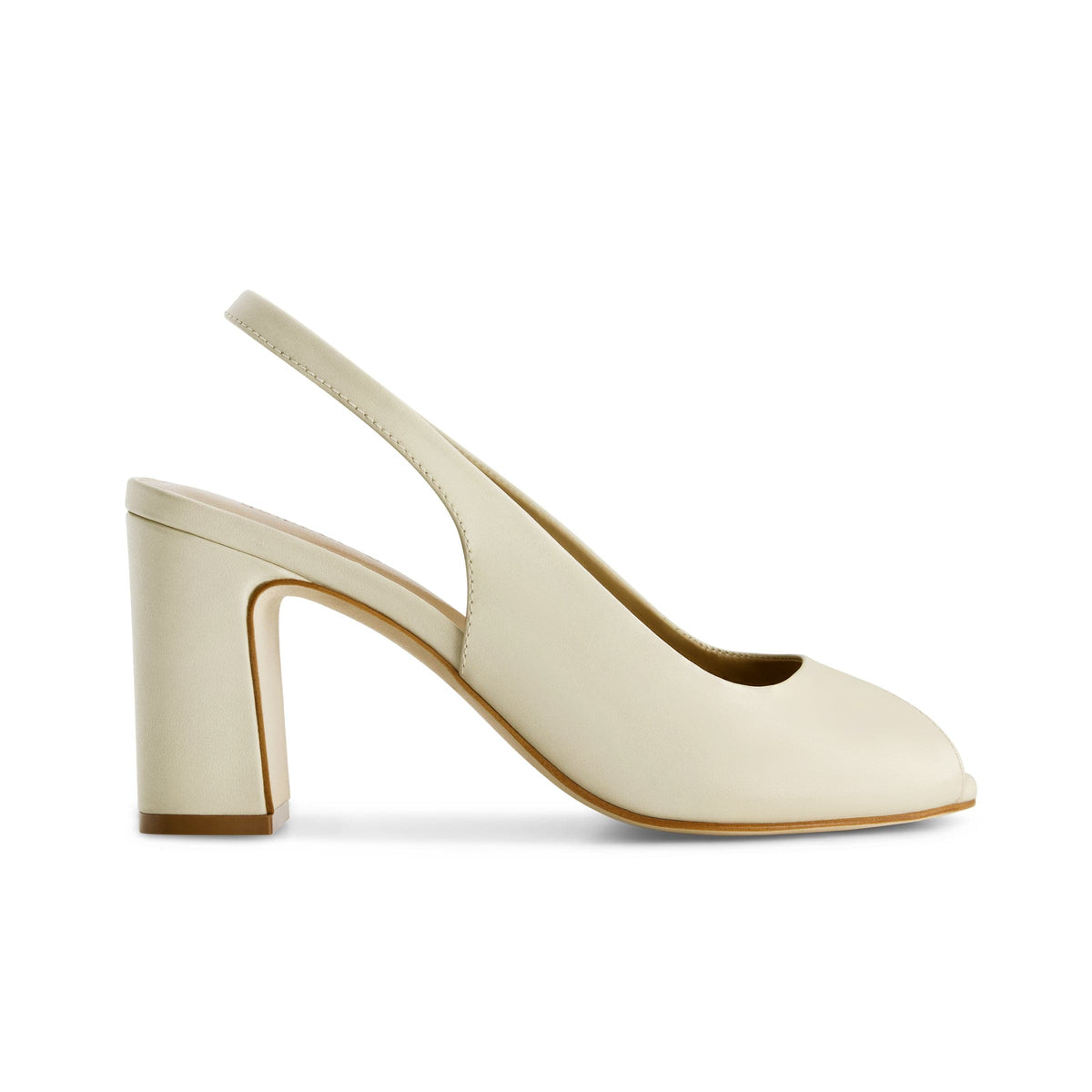 Desk to dinner. Crafted from soft glove leather, this slingback peep-toe offers the perfect modest heel for both workdays and after-hours elegance.