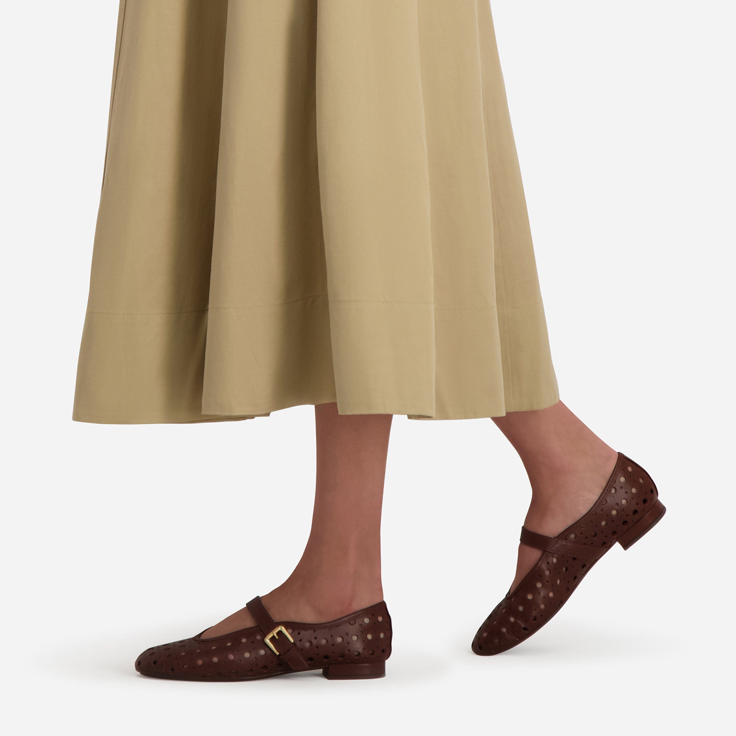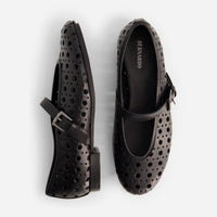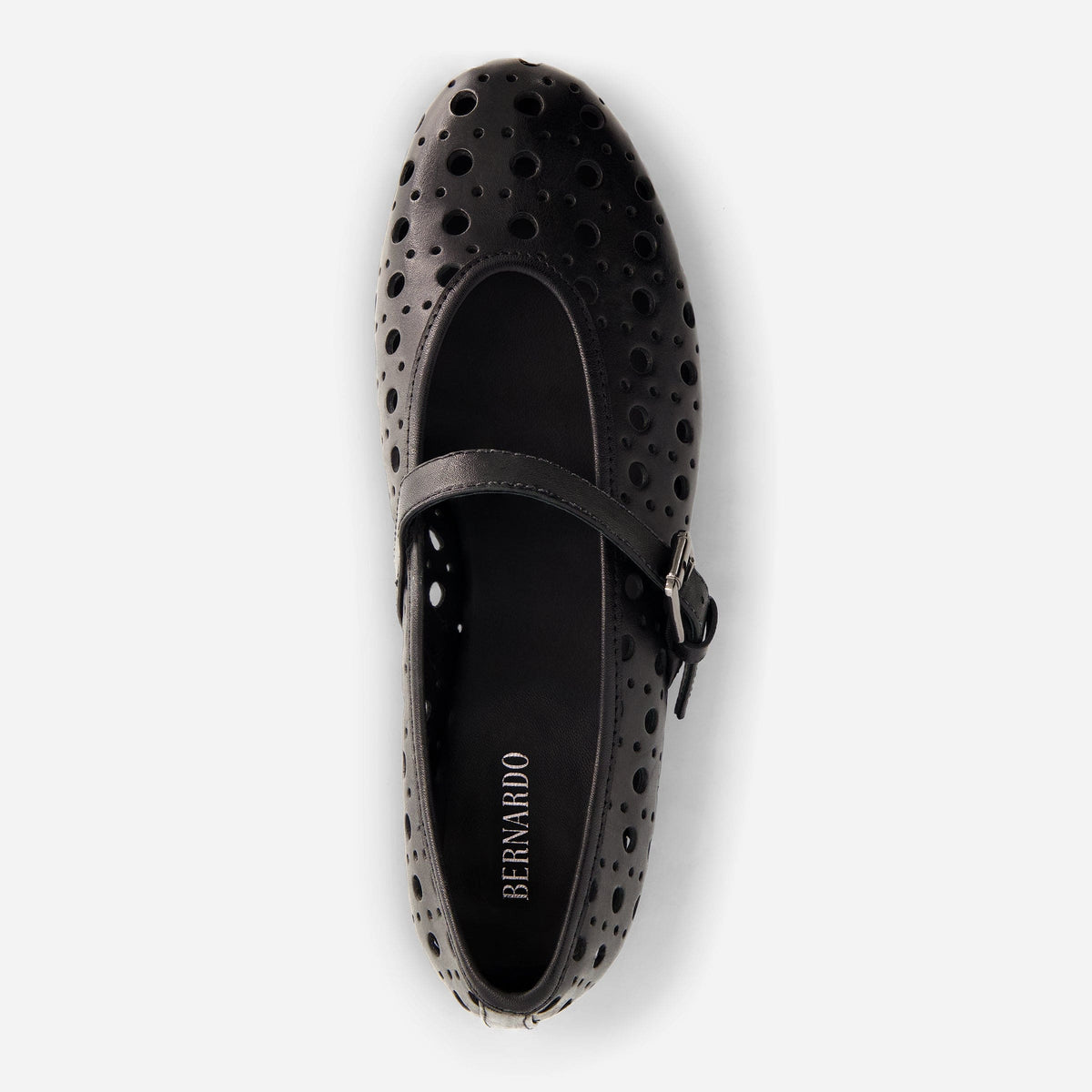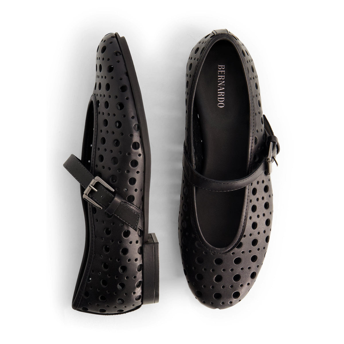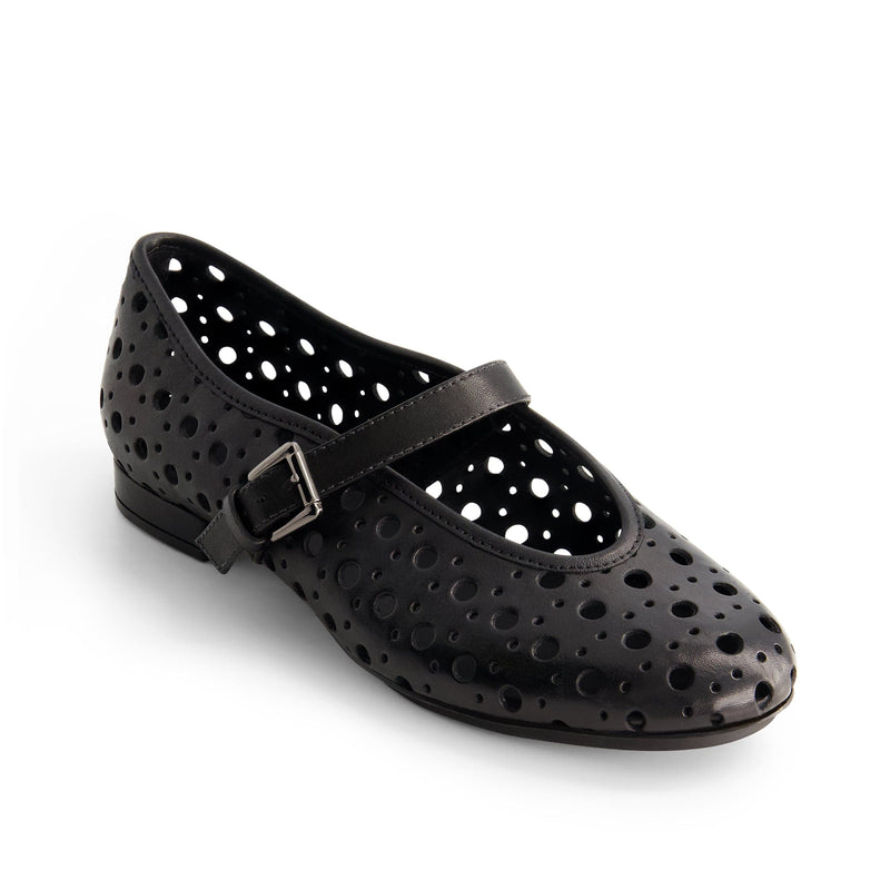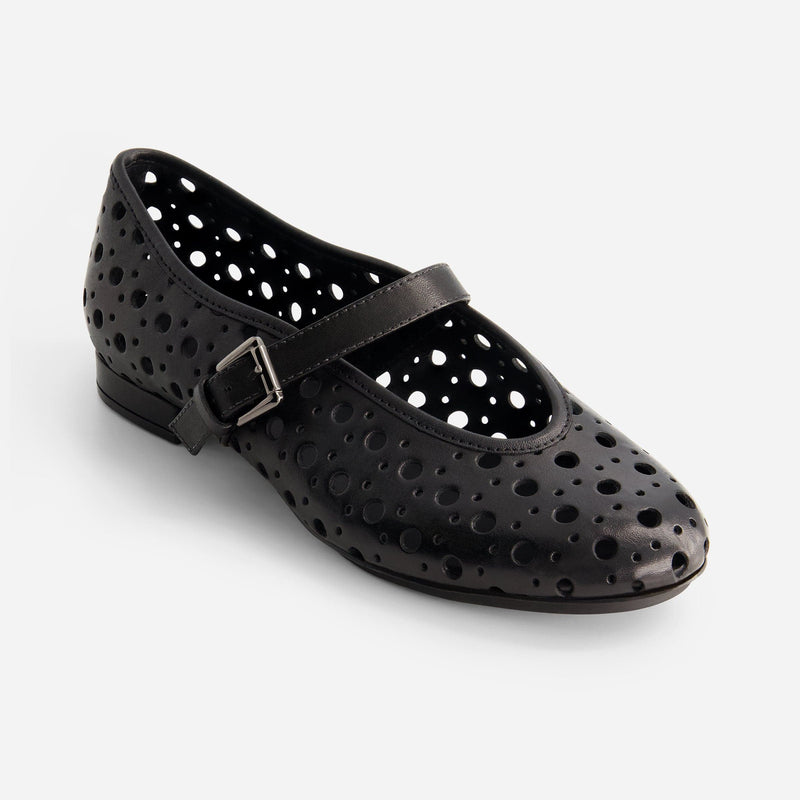 Classic femininity meets contemporary flair. This ballet flat features a classic round toe and adjustable Mary Jane strap for a secure, walkable fit. Crafted from a perforated material, it creates a subtle mesh effect that’s both breathable and effortlessly chic.