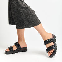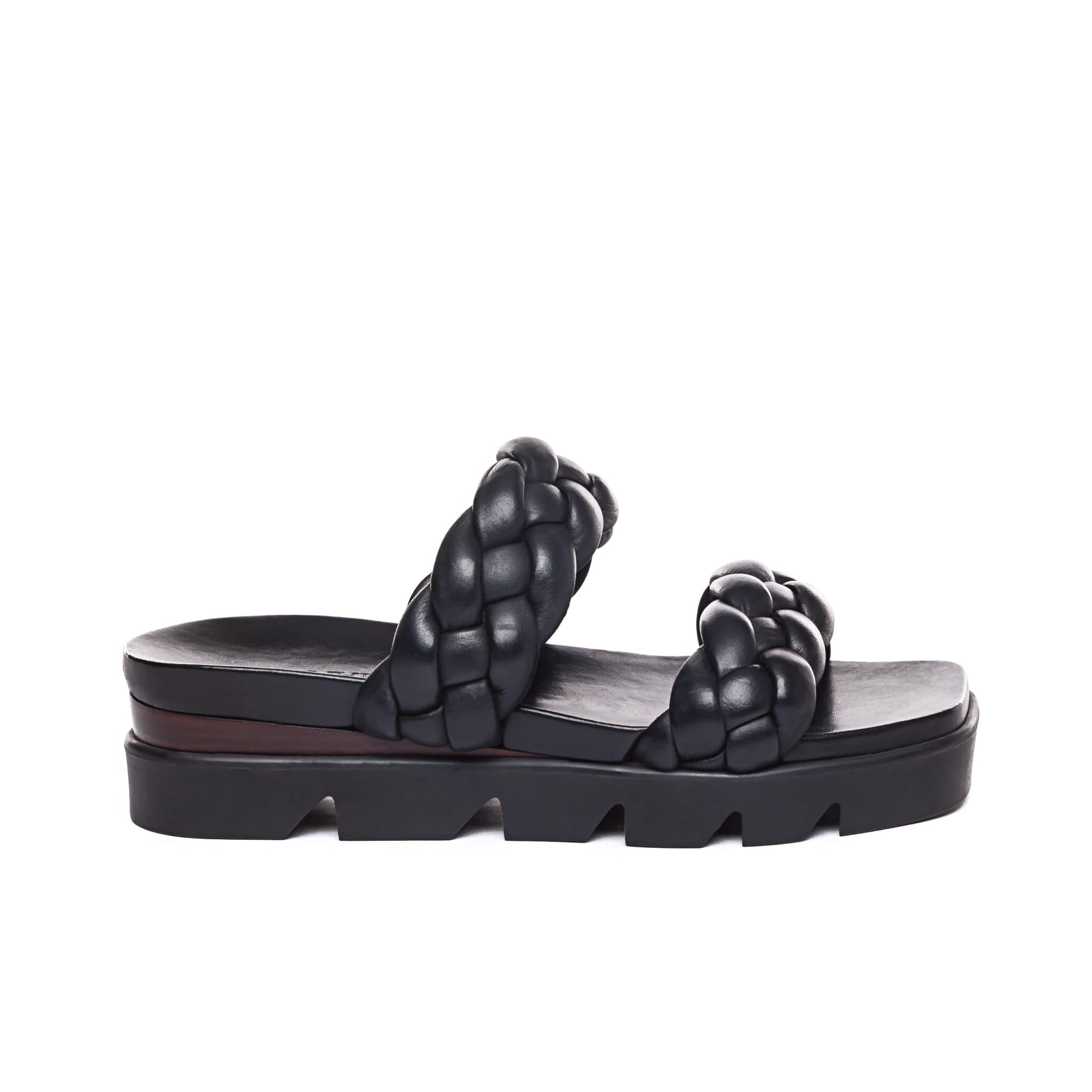 Rise above the rest in style Ciara! This platform sandal is designed on an edgy rubber sole, with a staked wedge and square modern footbed. This trendy construction is completed with two intricate woven straps that highlight the luxurious leather and artisanal handwork.