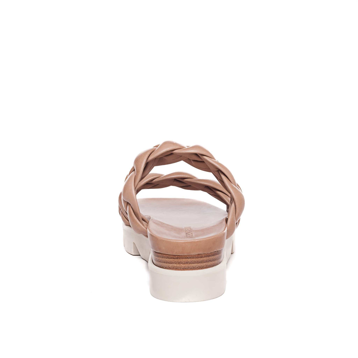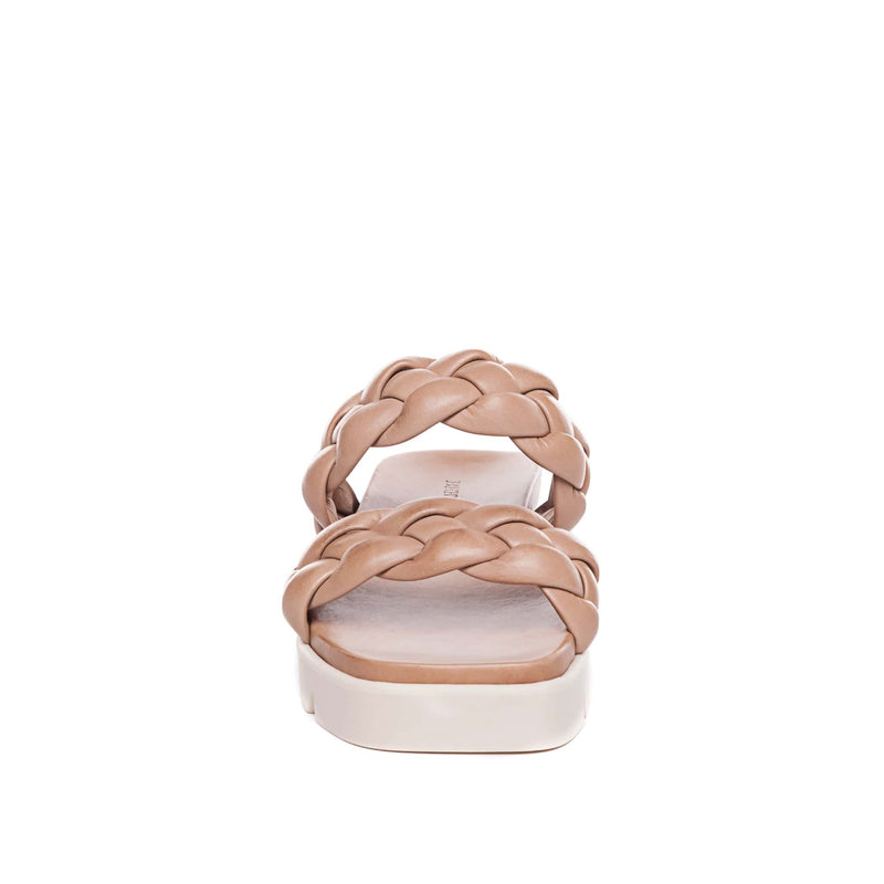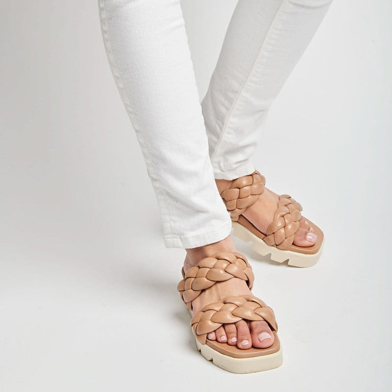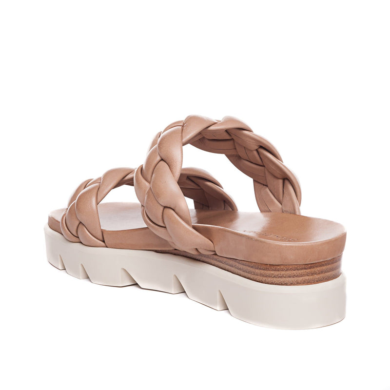 Rise above the rest in style Ciara! This platform sandal is designed on an edgy rubber sole, with a staked wedge and square modern footbed. This trendy construction is completed with two intricate woven straps that highlight the luxurious leather and artisanal handwork.