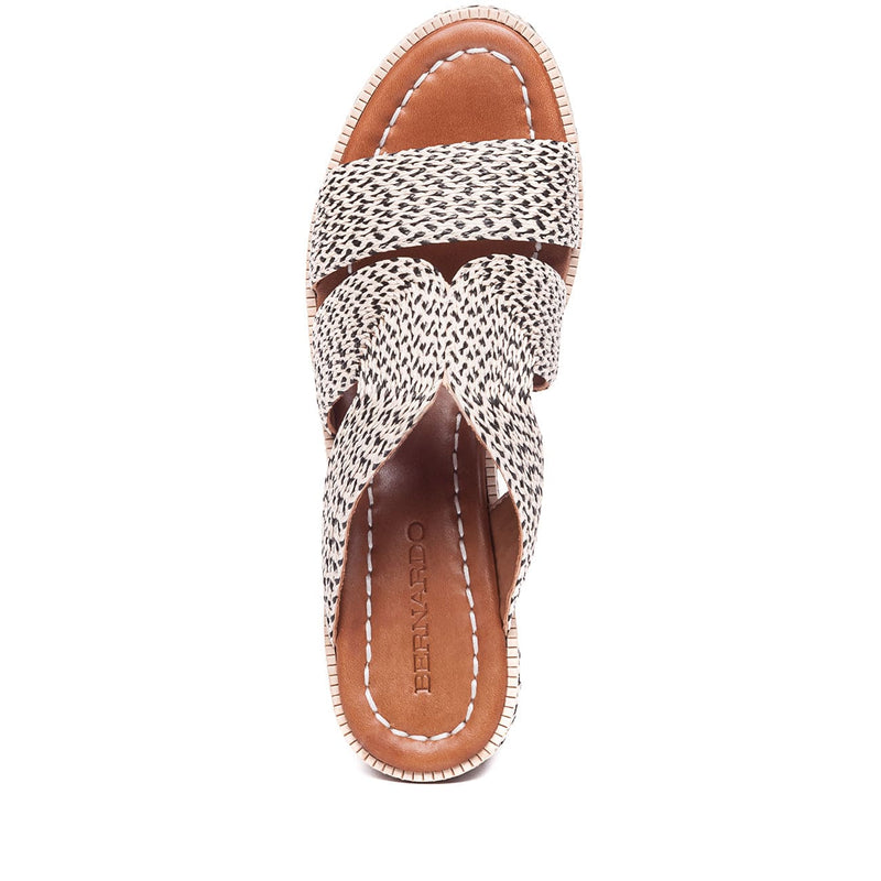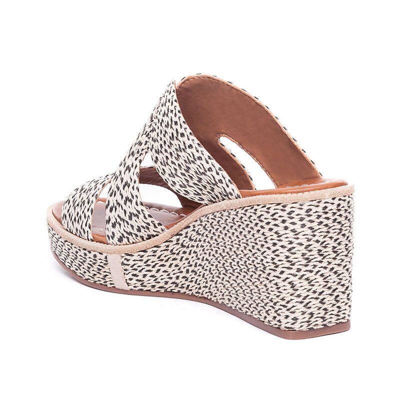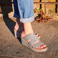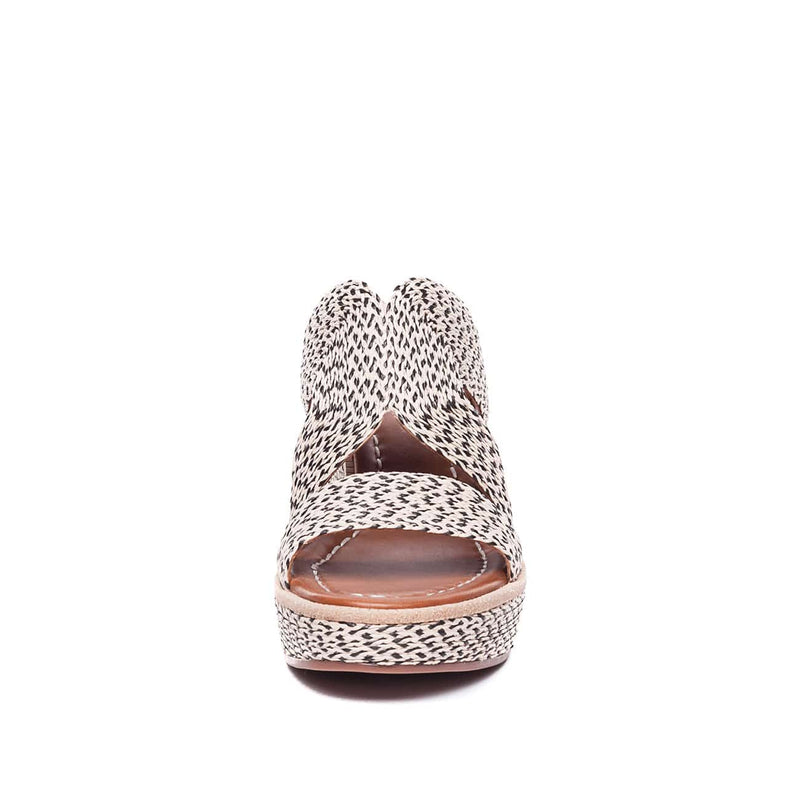 Everyone needs a great wedge. Meet Kaia: a sleek, raffia wedge slide sandal available in a variety of speckled neutral tones. This 3" wedge is very lightweight and has a cushioned leather footbed that will provide ease of wear and comfort for those long spring days.