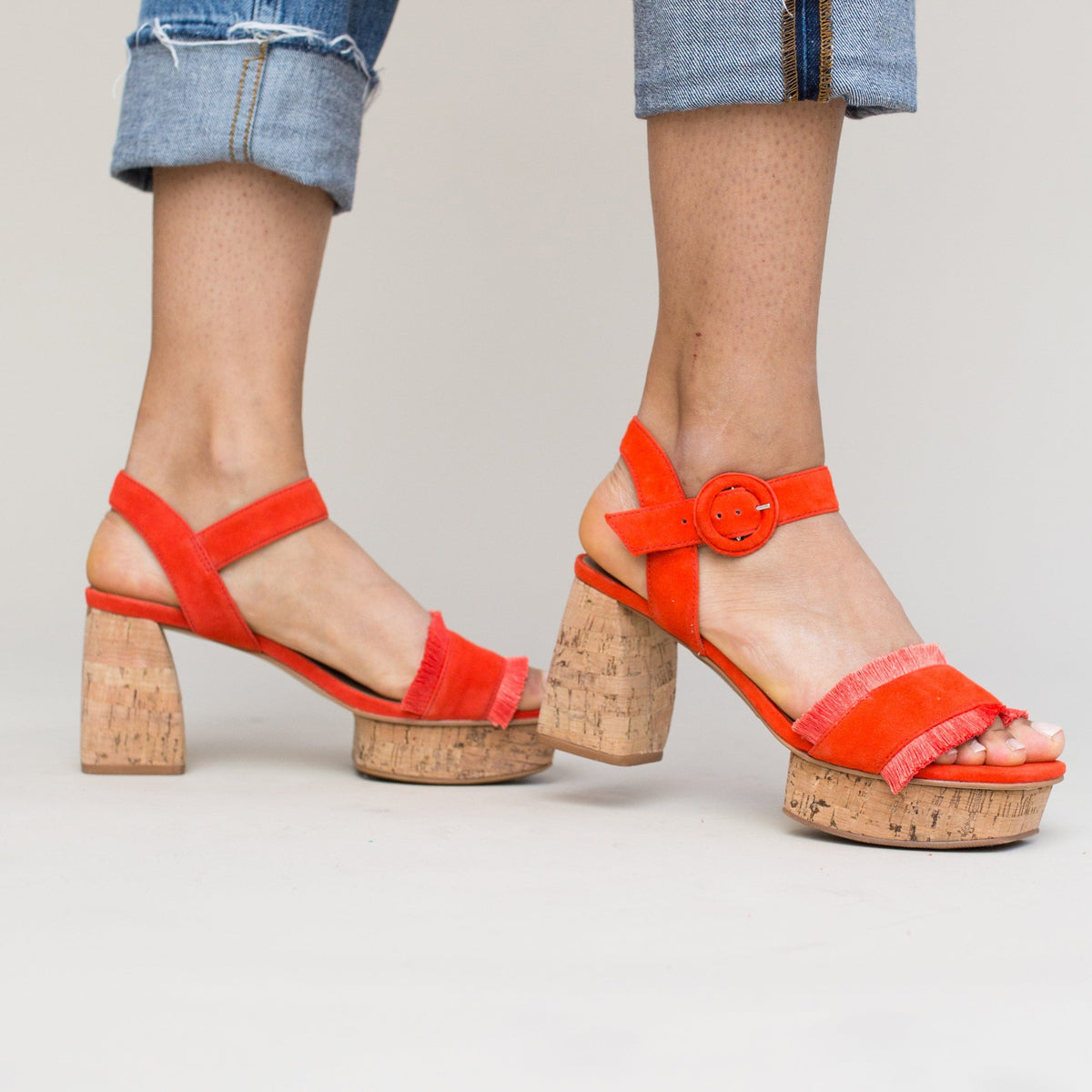 The Reagan sandal is sure to be your new favorite sandal. Featuring a 1" cork platform and fringe detail at the toe, this style will be a welcome addition to your wardrobe. A cushioned footbed and adjustable ankle strap ensure comfort while you make a statement.
