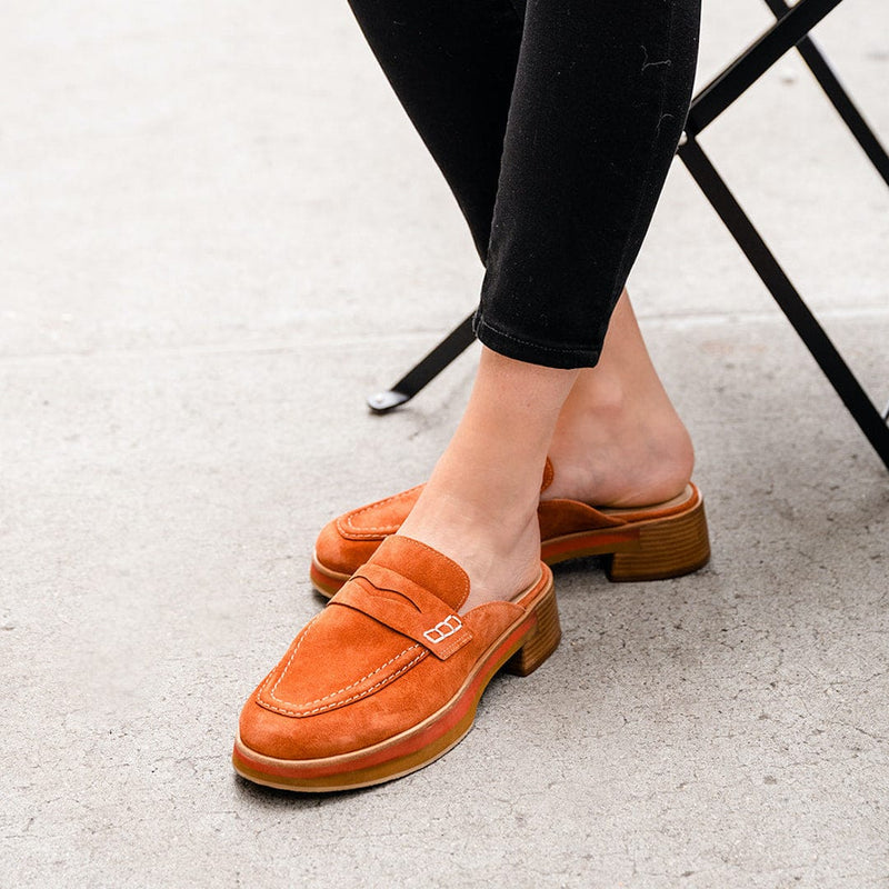Featured in a timeless penny silhouette and open-back style with added elevation, the Suri mule is effortlessly cool and classic. Style it casually or with tailored separates for a fresh business attire look.
