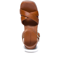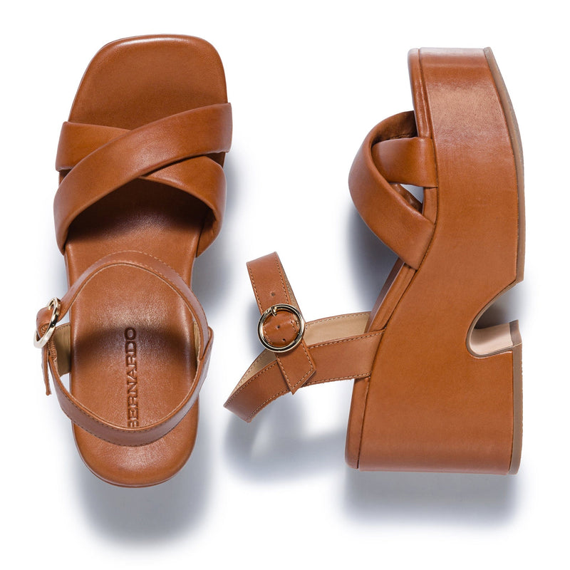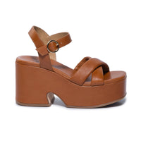 Throwback to the '70s with a bold flair! This standout design combines a chunky platform bottom, with a soft padded upper featuring two crossed straps, along with an adjustable ankle strap for a confident, distinctive touch that effortlessly transitions from casual to cocktail.
