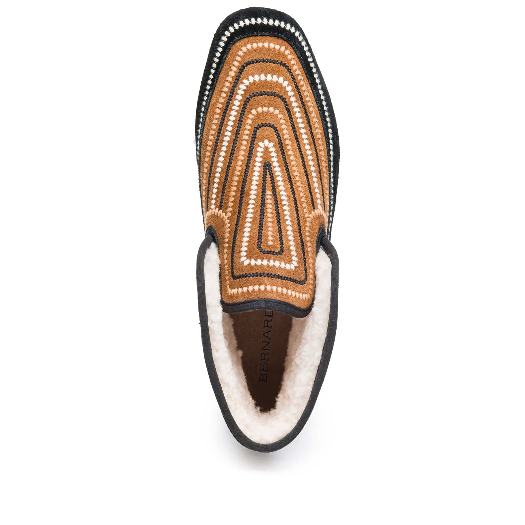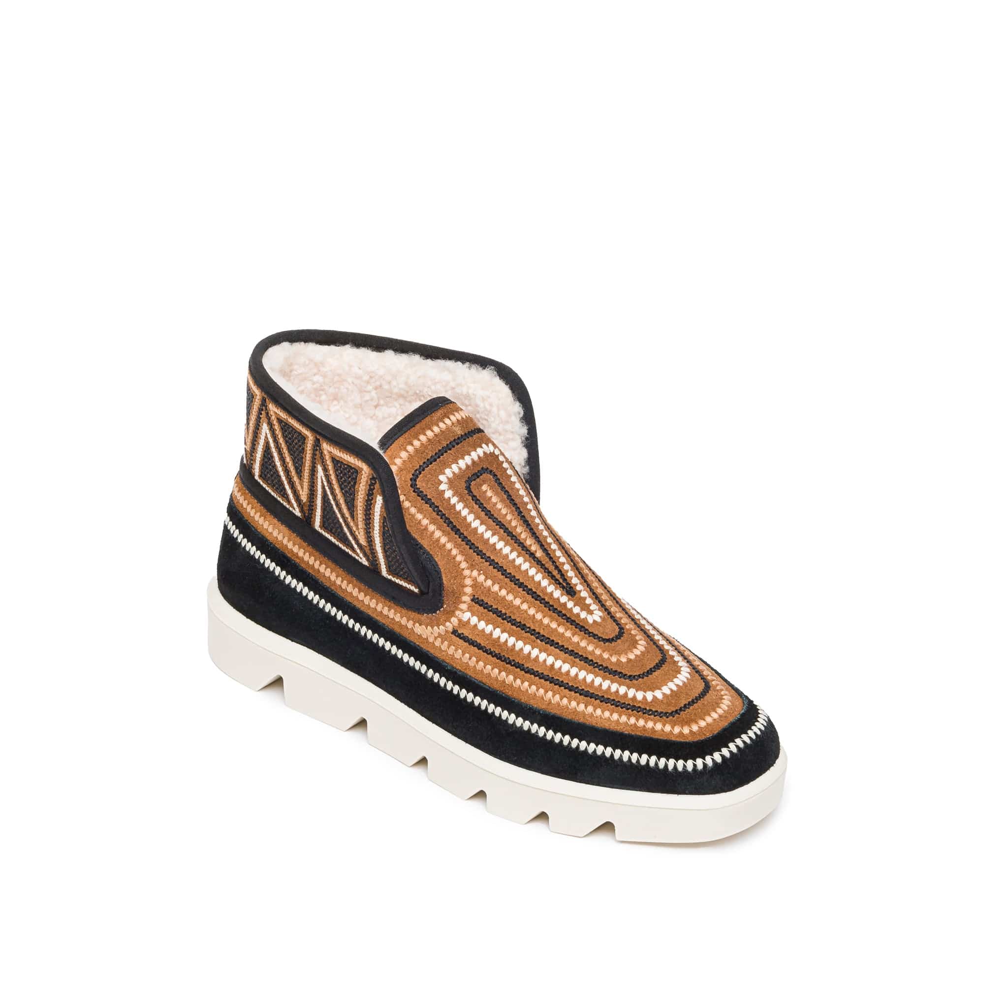 Somewhere between a sneaker and a bootie lies style Drea. Featuring a uniquely hand-embroidered upper and a genuine shearling collar, this winter-friendly shoe proves that you can feel cozy and look original at the same time.