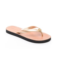 Introducing the perfect companion for a beach trip, the Ella. This lightweight thong sandal is easy to carry in your bag, and is made with a mix of rubber straps, an EVA sole, and a lux leather footbed. This is a must-have flip-flop for this season, and every season!