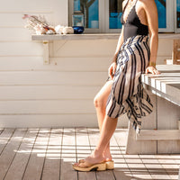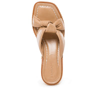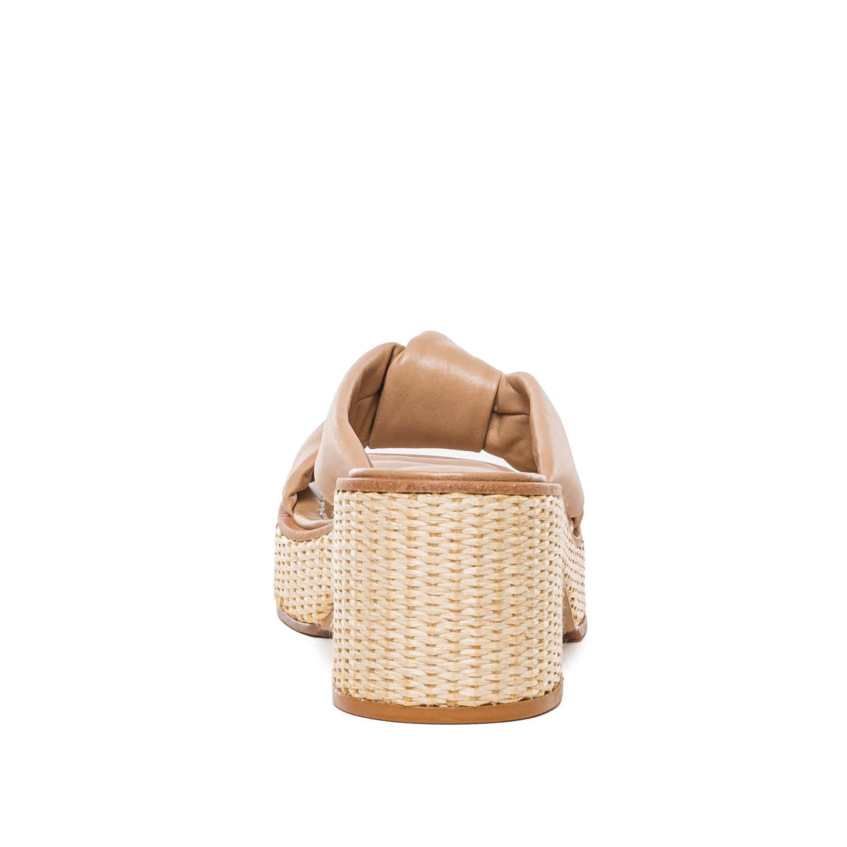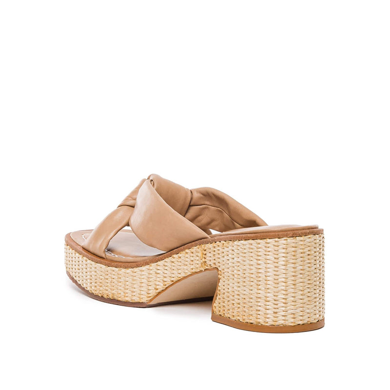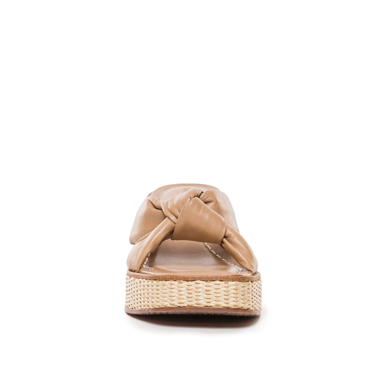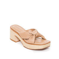 Add boho energy to your outfit with the Jolie Raffia sandal. This sandal features a knotted leather upper and a tonal Raffia wrapped heel.