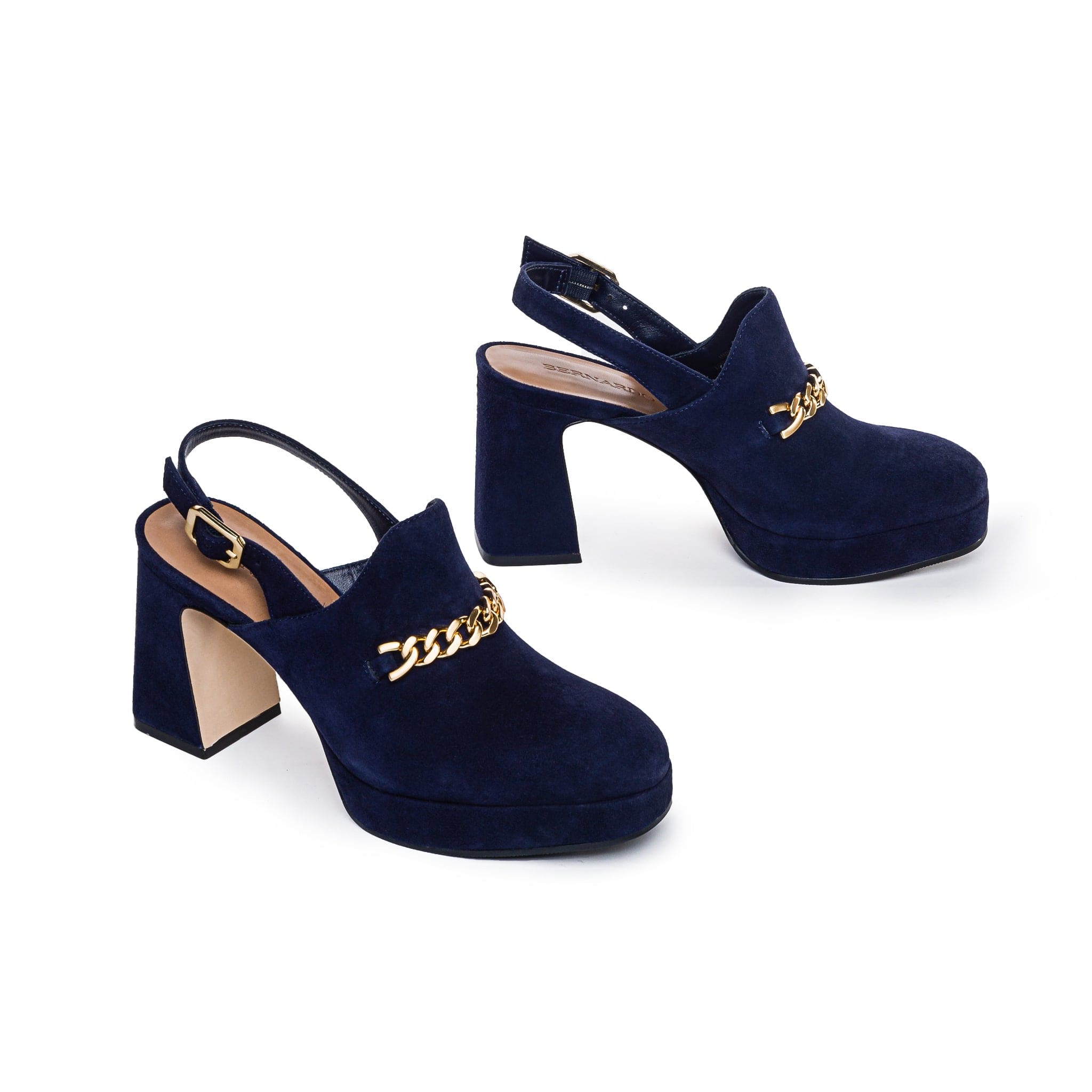 Our one-of-a-kind Napa platform clog is the epitome of effortless sophistication. Napa features a striking gold chain over a smooth suede upper, perfect for feeling confident and elegant any time of day.
