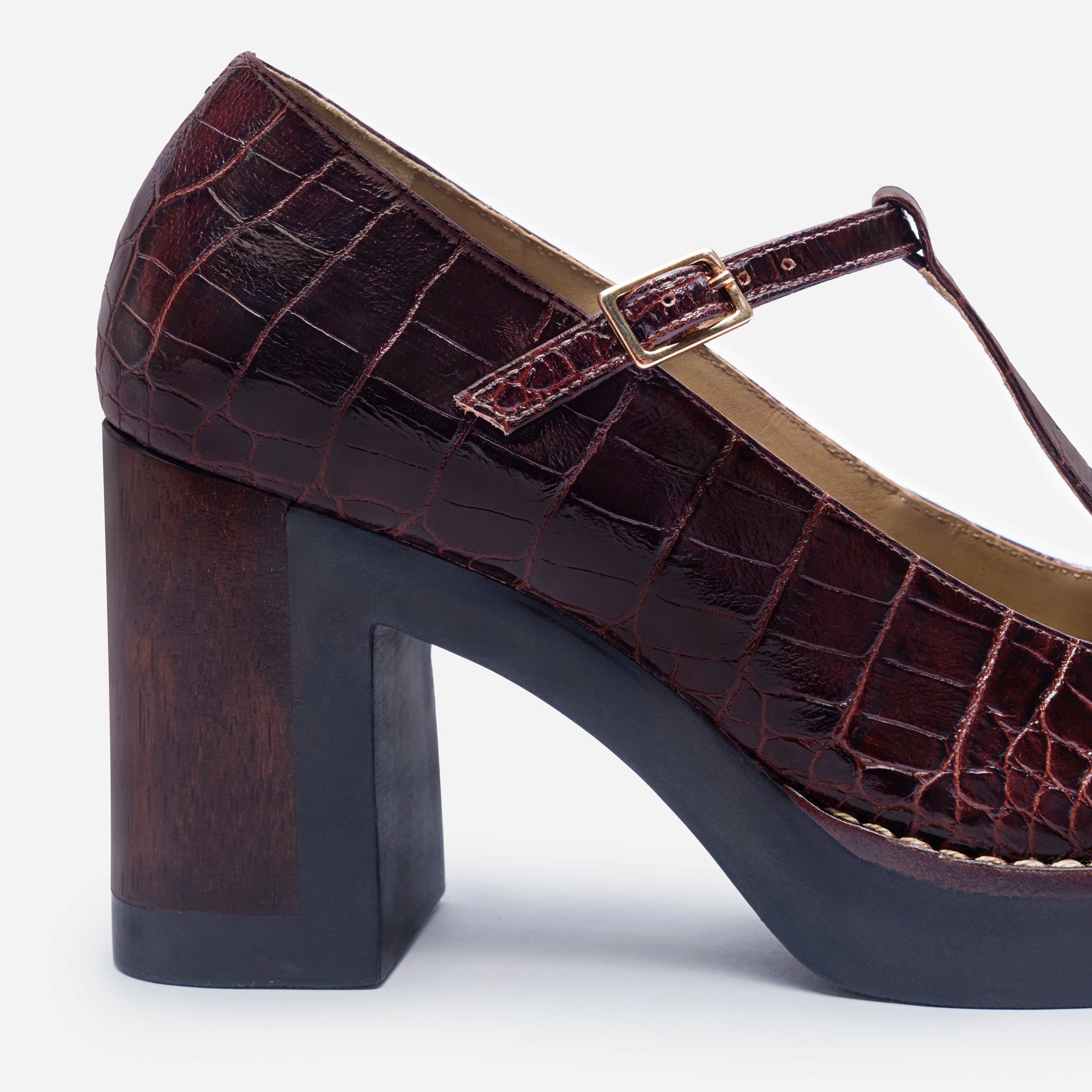 Modern fit on timeless looks. A new T-Strap Mary Jane featuring a vintage-meets-modern wood heel inserted into a rubber sole, designed to keep you sturdy and comfortable wherever the day takes you.