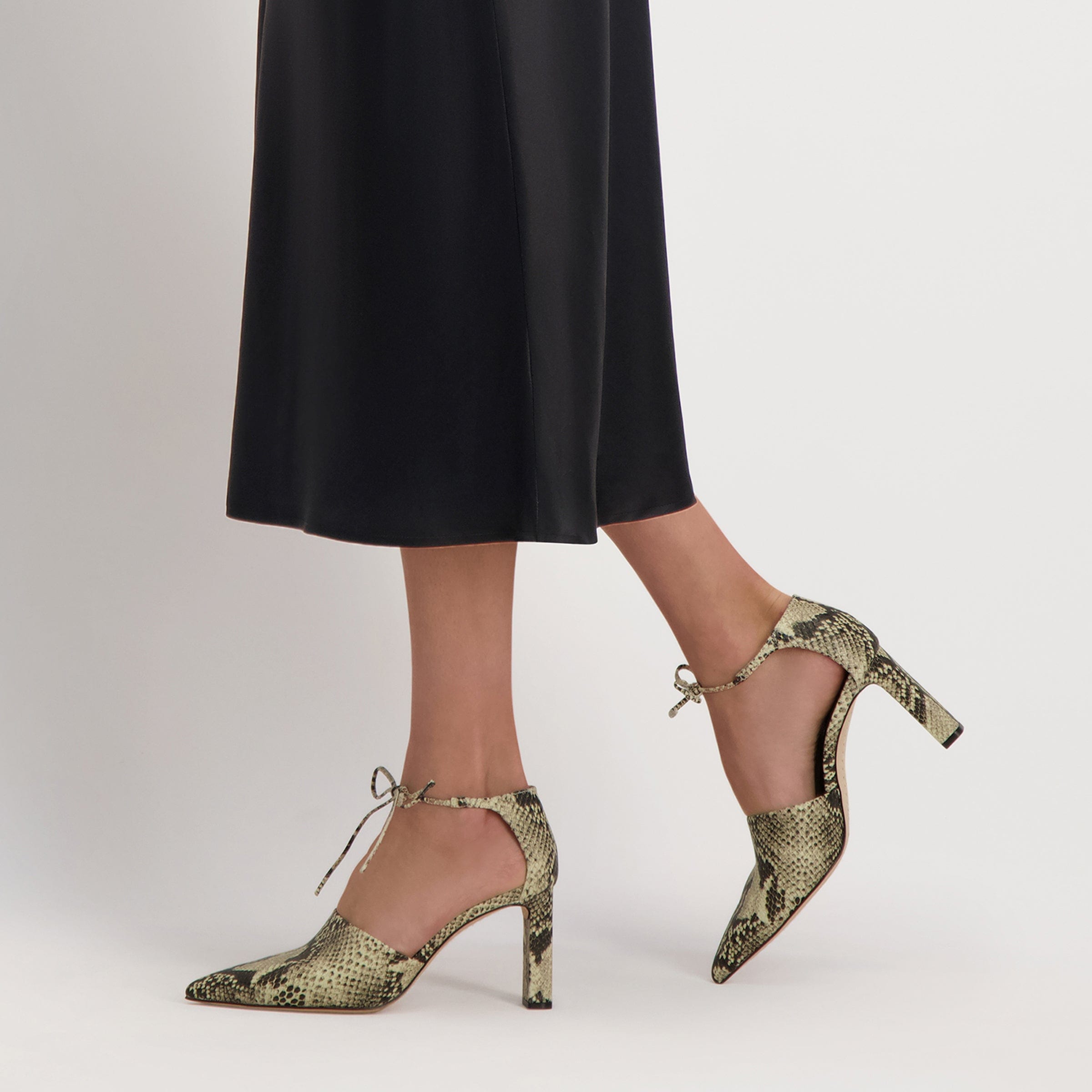 Understated elegance. A minimalist yet distinctive silhouette with a slim rectangular heel, delicate bow-tie closure, and modest vamp. Crafted with precision and designed for the woman who values both style and functionality, Siena exudes chic, modern polish.